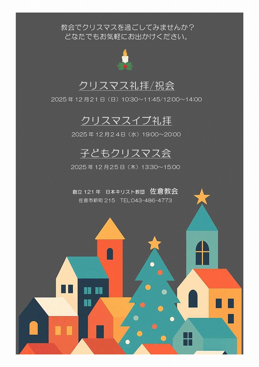 佐倉教会の2025年のクリスマス諸集会をご案内いたします。